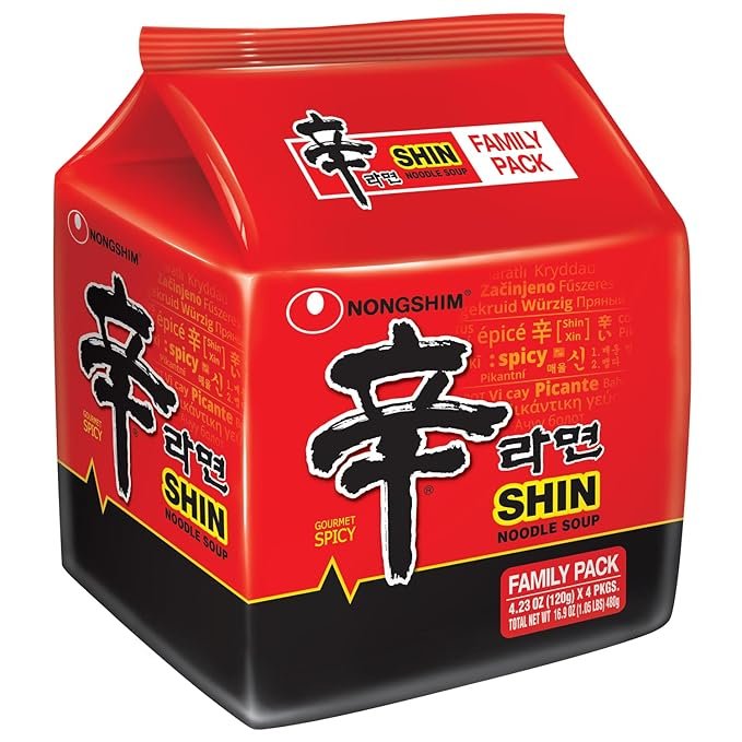 Nongshim Ramen Noodles, Gourmet Instant Ramen, Premium Microwavable Noodle Soup, Spicy Shin, Family Pack, 4.23 Ounce (Pack of 16)